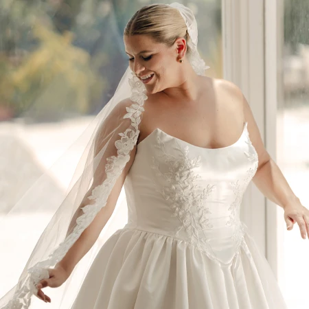 Entdecke unsere Auswahl an Designerbrautkleidern, die Du noch am selben Tag mit nach Hause nehmen.