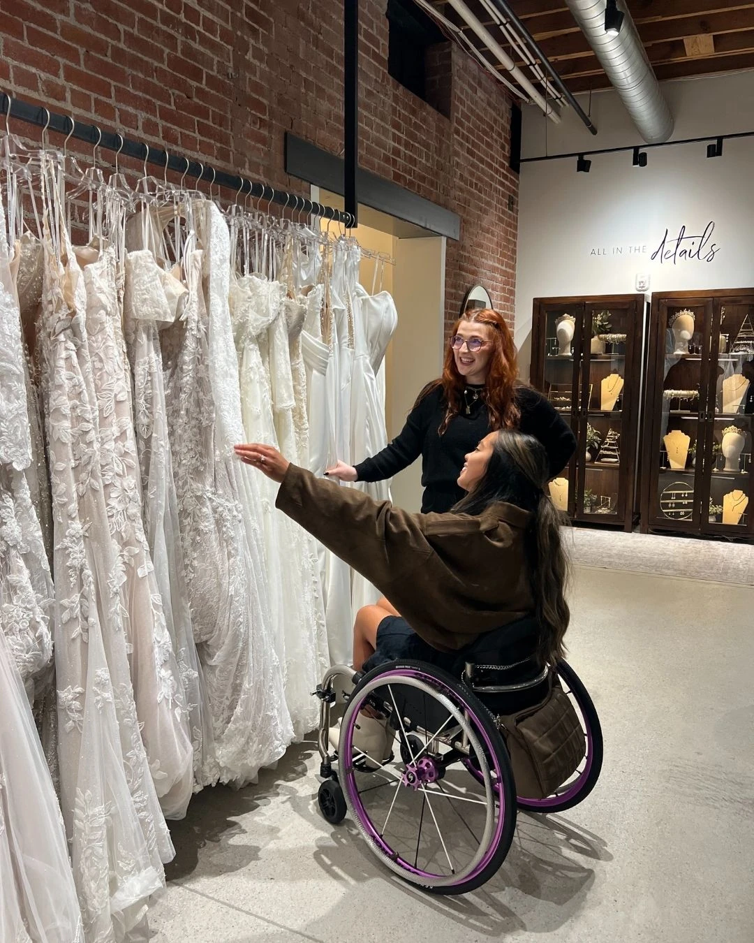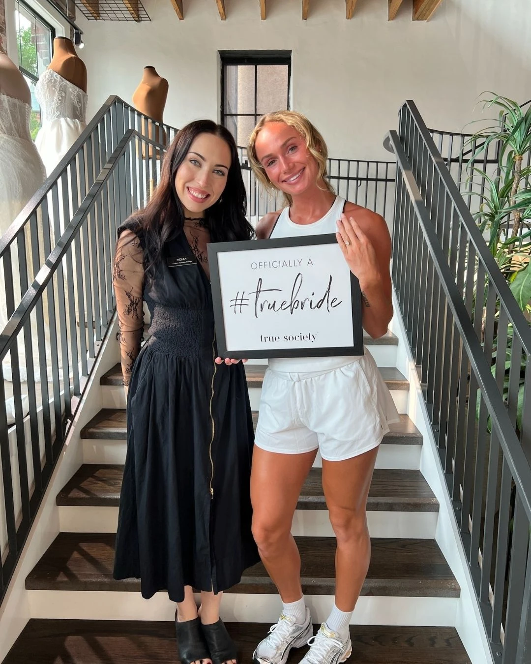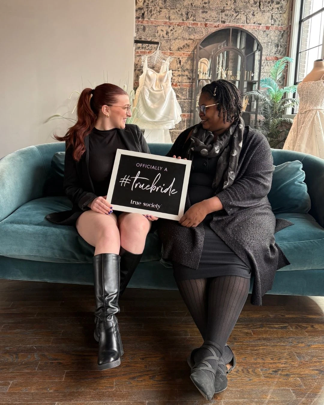 Geräumige, luxuriöse Umkleidekabinen. Kleiderstangen voller wunderschöner Designer-Hochzeitskleider. Brautexperten/innen, die sich für jede Braut, jede Geschichte und jede Liebe begeistern. True Society hebt das Einkaufen von Brautkleidern in Kansas City auf ein ganz neues Level.