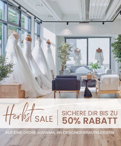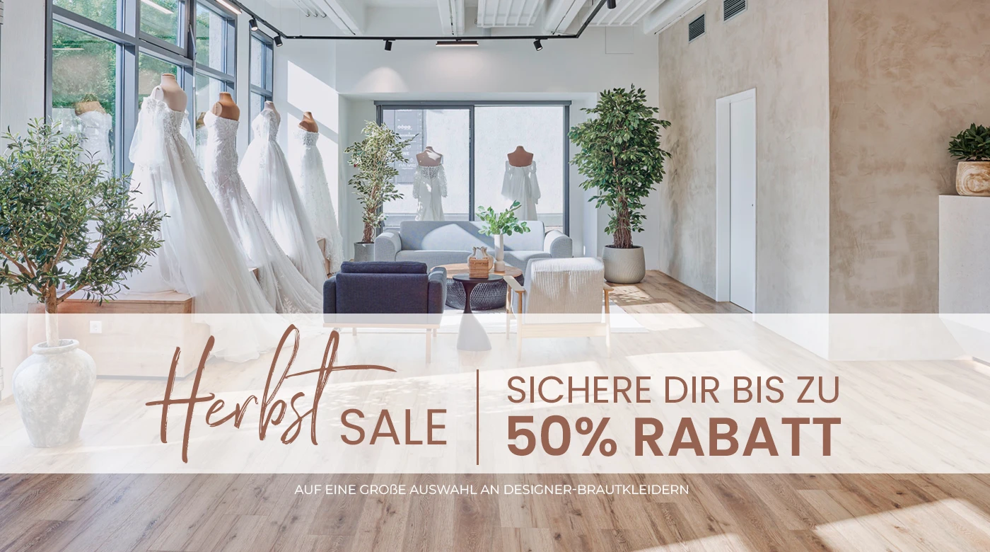 Der Herbst wird noch schönerWährend unseres Herbst Sales vom 7. bis 25. Oktober erwarten Dich ausgewählte Designer-Brautkleider mit bis zu 50 % Rabatt – schon ab 599 €.