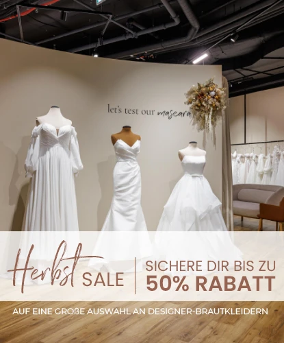 unseres Herbst Sales vom 7. bis 25. Oktober erwarten Dich ausgewählte Designer-Brautkleider mit bis zu 50 % Rabatt – schon ab 599 €.