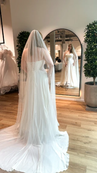 Yes, we carry a variety of plus size wedding dresses, ranging up to a size 54 (US size 26) for you to try on in store. Many of our gowns are available to order up to a size 62(US size 34) at our Berlin-area bridal boutique.