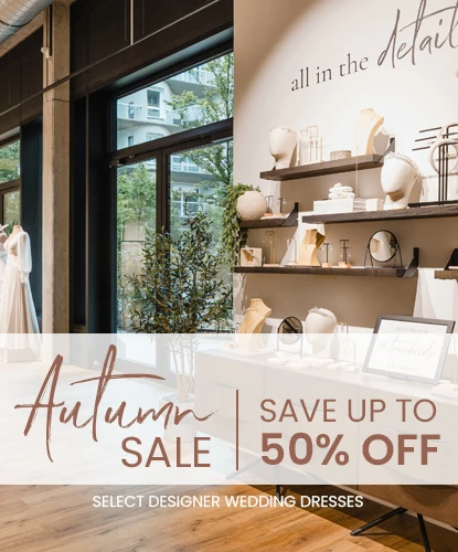 Autumn just got even better! During our Autumn Sale from 7.-25. October, shop a big selection of designer wedding dresses for up to 50% off – starting at just €599.