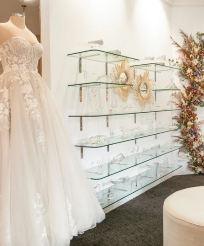 We recommend bringing your favorite skin toned undergarments or shapewear so you can envision every dress exactly as you would wear it on the big day! Having an idea of your shoe height can also be helpful when visualizing everything together—so it would be helpful to bring your dream wedding shoes (if you have them) when you visit us at the Perth bridal shop location.