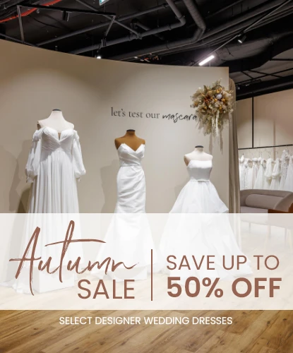Autumn just got even better! During our Autumn Sale from 7.-25. October, shop a big selection of designer wedding dresses for up to 50% off – starting at just €599.