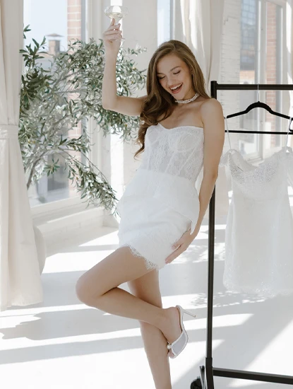 A second look wedding dress is an outfit change after your ceremony—often for the reception or after party. While it’s not a requirement, it’s become a favorite for brides who want to dance, move and surprise their guests with a fresh bridal vibe.